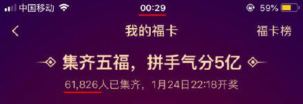 仅仅过了差不多 30 分钟,阿再就发现,有 6 万多个用户集齐五福。