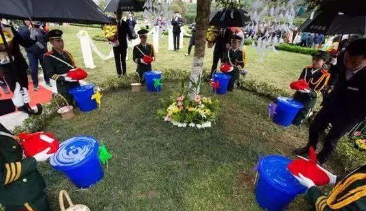 花葬:指在公墓内不设硬质墓穴或墓碑,使用可降解容器或直接将骨灰藏纳土中,以植花为主要标识安葬骨灰的一种形式。