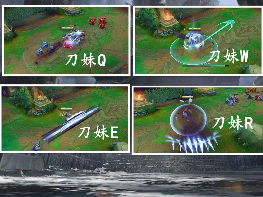 刀妹的Q和E,都是白光,盖住了技能的模型,看不出这个英雄的特别之处。倒是它的W,在蓄力状态的时候,背后会长出黑色的羽翼,给这个英雄增添了不少的霸气。而R技能,则是浅色的光圈围绕着刀妹,营造出一层铁幕,给人一种不好接近的感觉。本身IG冠军皮肤就是黑白色为主,让半刺客的刀妹,更接近于冷峻的杀手。