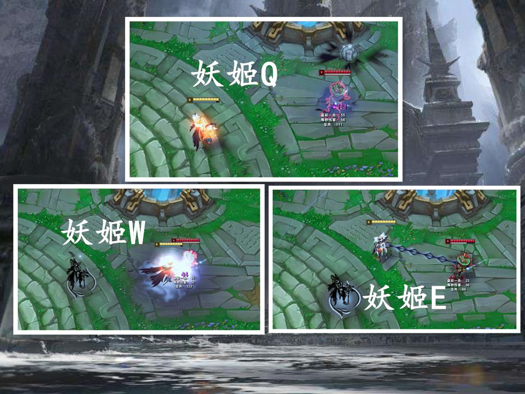 妖姬的Q会标记敌人,然后上方会显示IG的图标,白色的光圈,消失时周围是黑色的。而W踩向对方的时候,会有很耀眼的白光,给人的视觉冲击还不错。E技能则是牵出一条黑色的链子,一环接一环,倒和囚禁犯人的铁链有几分相像,给人一种很恐惧的感觉。整体来说妖姬的冠军皮肤还不错,不过它的Ban率很高,打匹配倒是可以,喜欢排位的玩家谨慎购买。