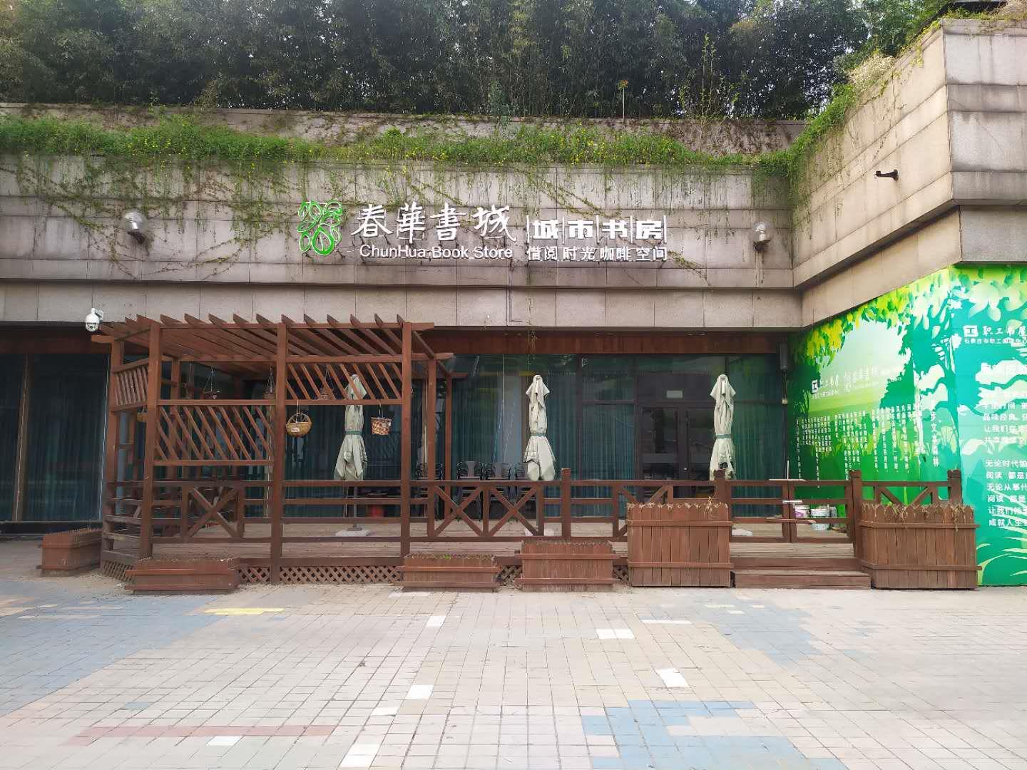 春华书城目前大门紧闭,空无一人。