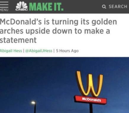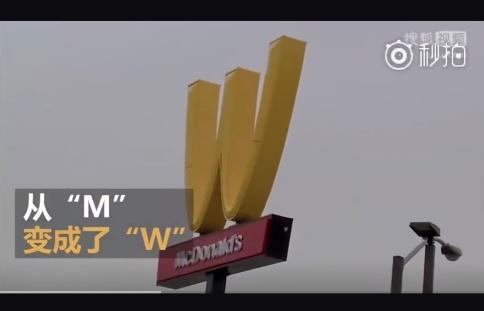 麦当劳"金拱门"倒立了,恶作剧?网友:Man变Woman麦当劳有心了