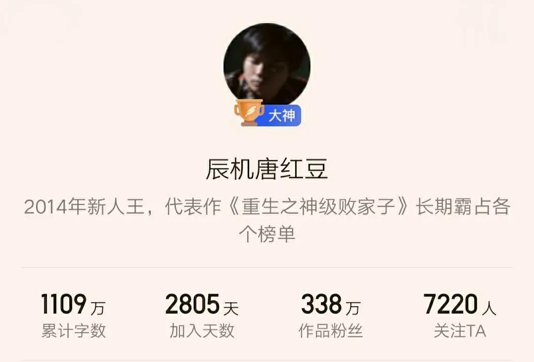 大家好,我是佛门射手,第一时间给您带来小说力推、作家趣闻和IP改编的介绍,希望喜欢的读者关注点赞评论来一波,今天跟大家说的是起点大神级作者“辰机唐红豆”。