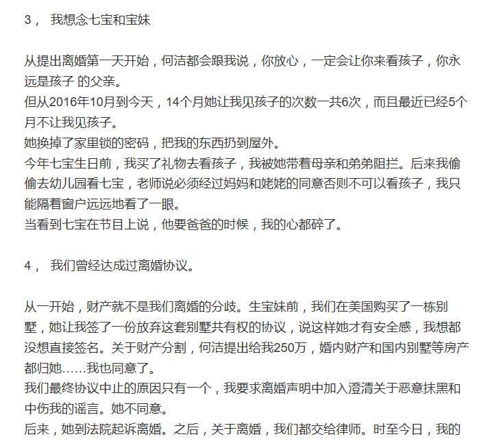 当我后来看到赫子铭的一系列抱怨时,说实话,还是挺让人心寒的。因为作为父亲,赫子铭被禁止见到自己的孩子,从法律上来说他也有照顾和抚养孩子的权利,但现在按照目前的说法,他只见过孩子6次。在过去的14个月里,也被封锁了很多次。