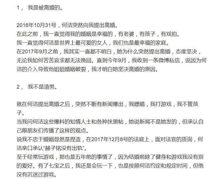 赫子铭交代长文,粉碎出轨离婚传闻