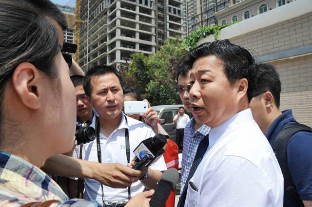 6月25日,王书金的辩护律师朱爱民(右)在庭审结束后接受记者采访