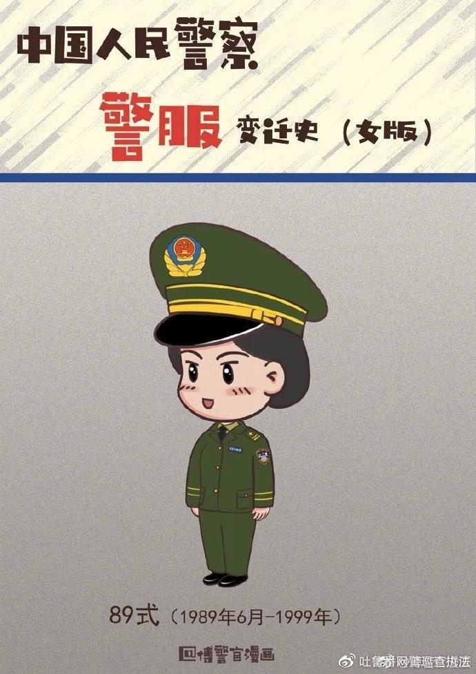 1995年7月,“八九式”警服又进行了小改,警衔由领章改为肩章,佩戴肩章式警衔,取消领章。警号底色由红色改为深蓝色,字为银色,改为有机玻璃制作。