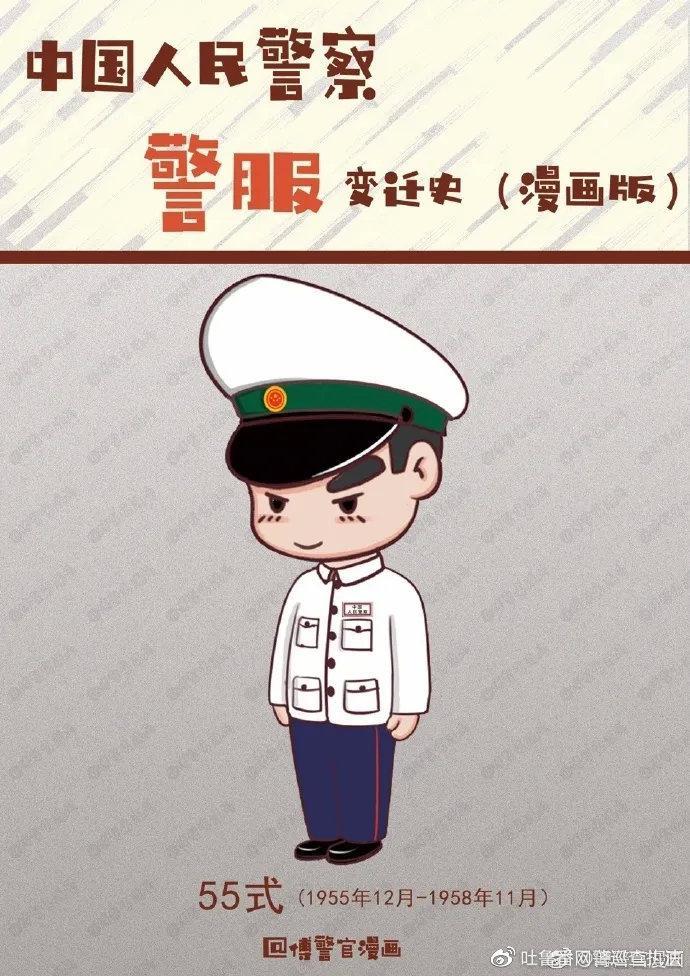 1953年,公安部根据广大民警、人民群众和国际友人提出的建议,参照其他国家的经验,并依据当时国家的实际情况,设计了人民警察新式警服、装备和帽徽图案,后经政务院批复施行,这就是“五五式”警服。