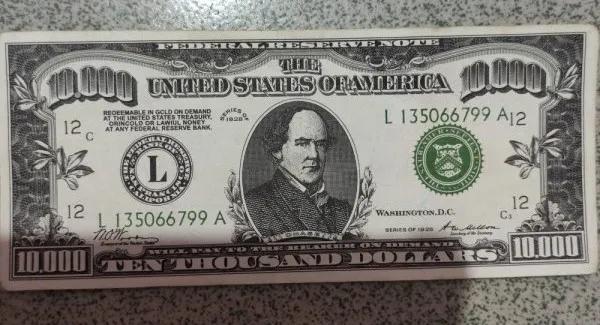 正常流通的美元最大面值为100美元,但是1934年却发行过面值10000美元的纸币,正面为美国第28任总统威尔逊肖像,投入流通共42000张,10000美元折合人民币71570元,相当于普通人一年薪资。