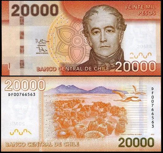 智利比索为智利流通货币,流通的比索,纸币发行于2009年,硬币发行于1989年,最大面值为20000比索的纸币,最小面值为1比索的硬币。