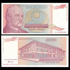 5000亿南斯拉夫第纳尔于1993年12月23日发行,发行时的购买力,等同于人民币6元的购买力。