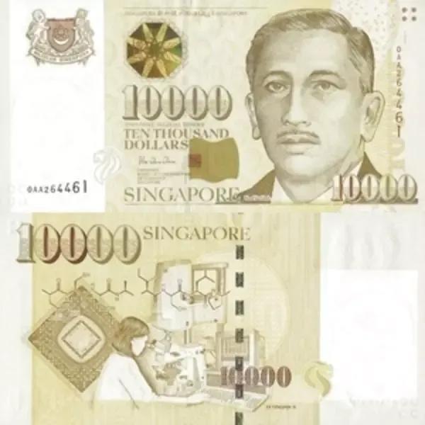 1987年发行了10000元面值的新加坡元,这个数字不算大,大的是他的实际价值,10000新加坡元折合人民币53879.31元,相当于普通人一年的薪资。