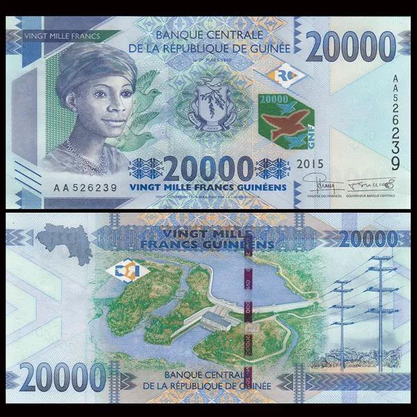 几内亚法郎的纸币面值: 1、2、5、10、25、50、100、500、1000、2000、5000、10000、20000,铸币(硬币)有1、5、10、25、50。