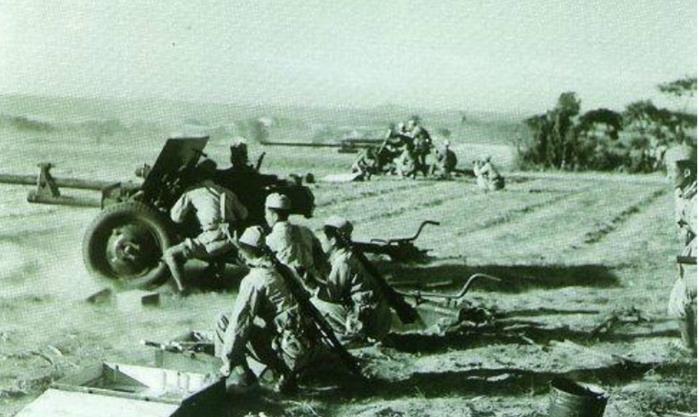 解放军战士们经常淋雨工作,身上的衣服被反复淋湿,又吹了海风,很多战士都得了伤风感冒,但大家依旧坚持在工作岗位上,历经千辛万苦终于将火炮送到了预定作战地点。