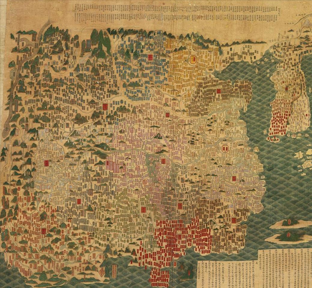 山谷藏疾,时作弗靖,虺兕窜伏,功在刊涤,作洮河、松潘、虔镇、麻阳诸边图五。壶口既治,宣房载歌,沉玉负薪,群策毕效,作黄河图三。水陆萦纡,漕卒岁疲,储峙孔艰,国用攸赖,作漕河图三。四海会同,滨渤远输,仿佛往踪,用备不虞,作海运图二。四夷来王,兵革不试,治之极也,作朝鲜、朔漠、安南、西域图四。