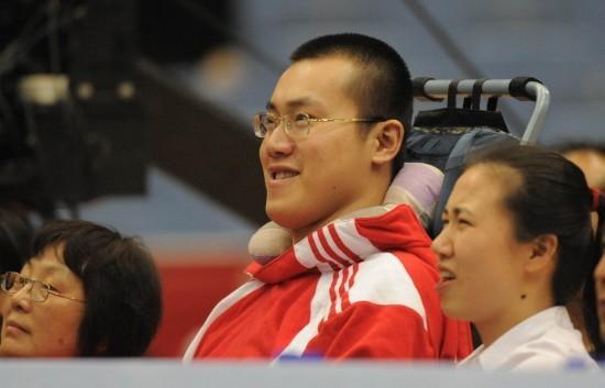 轮椅上的男人叫汤淼,曾经是国家男排运动员。