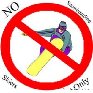 由于其危险性较大,很多滑雪场都禁止单板滑雪,这也是一段有趣的历史。当年美国的600个滑雪场中只有39个允许使用单板滑雪。尽管在一些允许单板滑雪的雪场中,也通常将普通滑雪者与单板滑雪者分开。