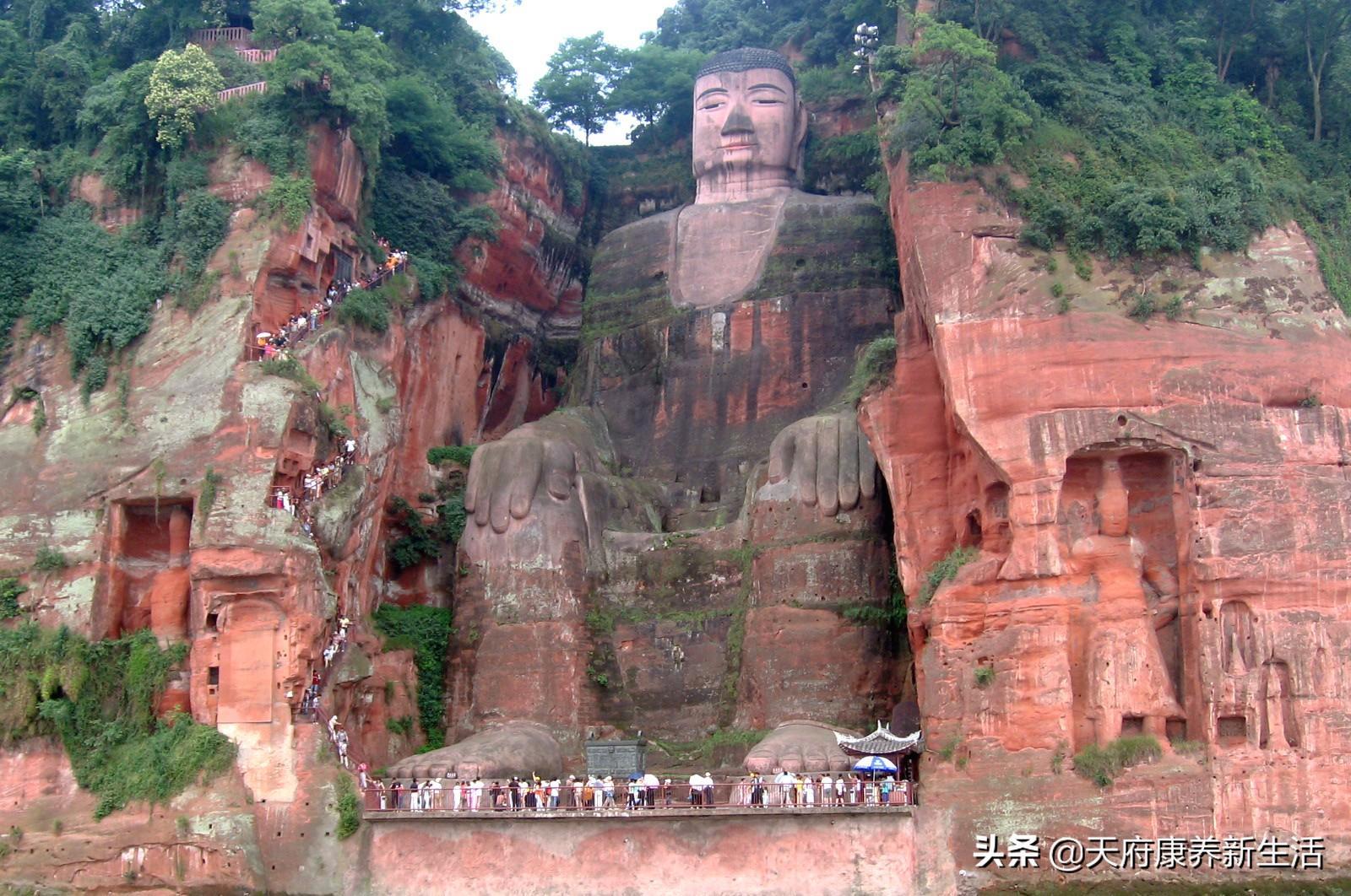 乐山大佛,又名凌云大佛,位于四川省乐山市南岷江东岸凌云寺侧,濒大渡河、青衣江和岷江三江汇流处。大佛为弥勒佛坐像,通高71米,是中国最大的一尊摩崖石刻造像。
