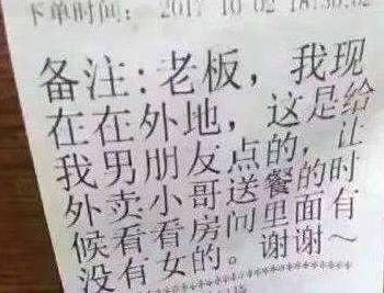 这样的情况是女司机车子坏掉了,然后点外卖的备注是:找一个会修汽车的外卖小哥送给我,我的车子坏掉了。外卖小哥好样的。