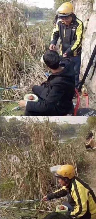 男顾客钓鱼时点外卖,小哥送到以后还替顾客吊起来鱼了、厉害了我的外卖小哥哥。
