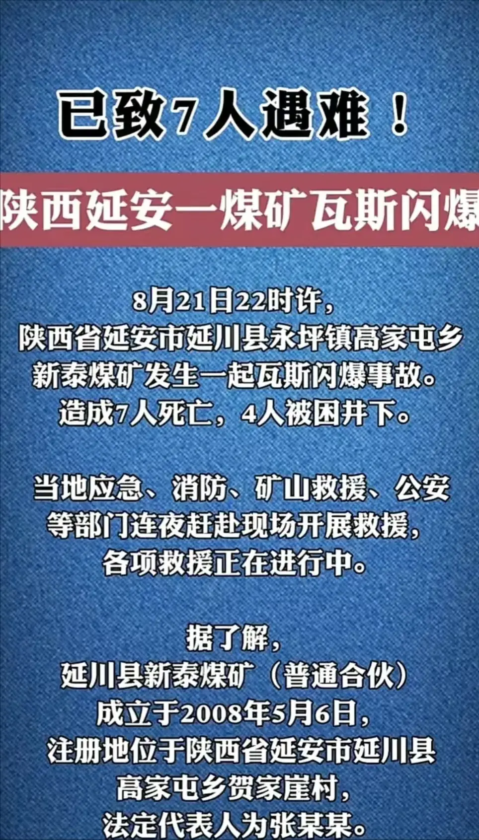 近日,陕西省发生了一令人痛心重大安全事故,造多人丧生被困。该事件迅速引起了公众的关注和援助行动,紧急救援仍在进行中,希望能尽早挽救更多的生命。