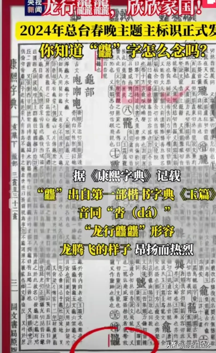 “龘”是今年春晚主题中的特殊字眼,它出自《康熙字典》中的第一部楷书字典《玉篇》,音同“沓(dá)”。这个词形容了龙腾飞的样子,寓意着昂扬而热烈的氛围。在中华五千年的历史中,龙已经成为了中华民族的精神象征和文化符号,代表着力量、勇气和智慧。