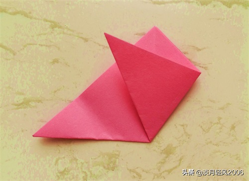 把右下角折到左边图示位置(底部是折到中心位置,左边是折到斜边三分之二处)