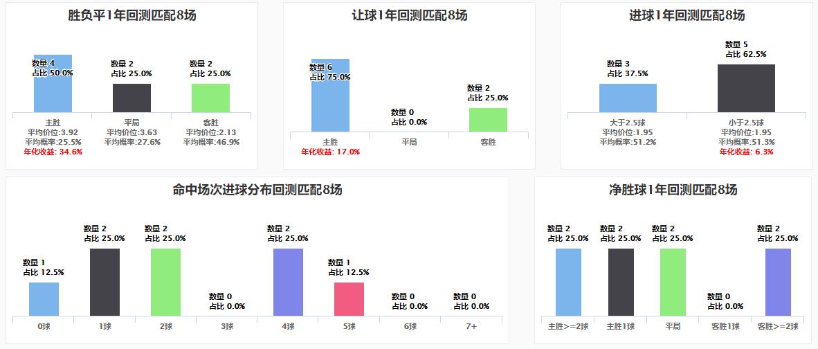 从目前Q系统给的概率来看反倒是主胜的概率最高达到了50%。从让球回测来看主胜概率达到了75%。全场小于2.5球概率高达62.5%,从进球分布回测来看分布比较散。净胜球回测概率分布看也十分散。结合SPdex超级指数q系统和早盘SPdex超级指数数据来看本场比赛看好主队主场不败。