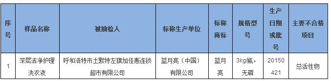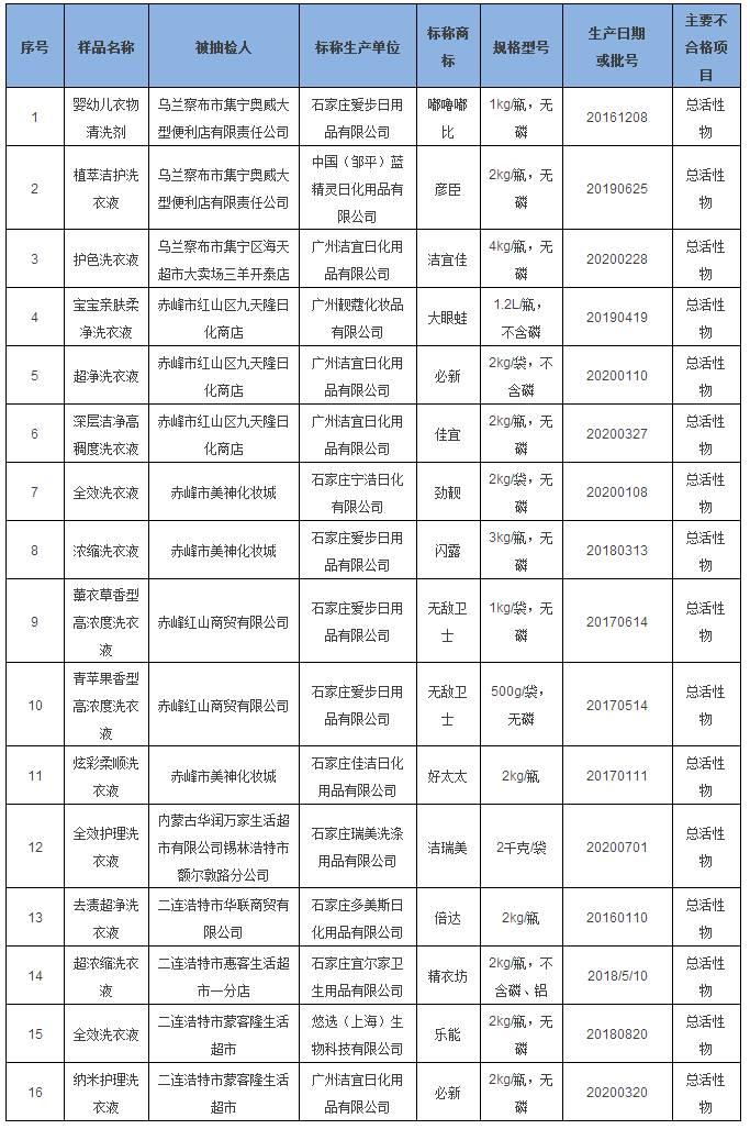 近日,内蒙古自治区工商局发布2017年流通领域衣料用液体洗涤剂质量抽检结果。抽查检验结果显示,17种衣料用液体洗涤剂商品存在质量问题,主要为总活性物项目不符合相关标准。