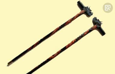 11.锤:有长杆单锤,短柄双锤,链子锤等,根据锤头的形状,又分为立瓜、卧瓜、四方、八楞锤等。短柄双锤非常沉重,舞动起来很费力气,多硬砸实架,所以有“锤棍之将,不可力敌”之说。