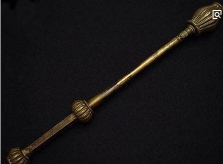 10.锏:锏是一头兵器,形与双鞭略同,但简身无节,端无尖,体成棱形,四面向内凹陷,所以称为“四面金装锏”,或“凹面锏”。