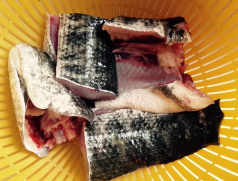制作过程:第一步,黑鱼事先处理干净,擦干水,剁成段,将黑鱼加上少许的食盐涂抹均匀,腌制30分钟,用厨房纸巾将腌好的鱼肉表面的水分擦干;