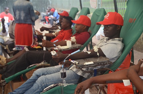 6月14日,志愿者在乌干达坎帕拉一处献血点献血。 新华社发(尼古拉斯·卡乔巴摄)