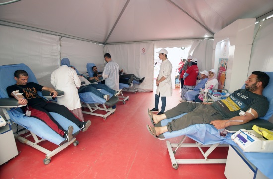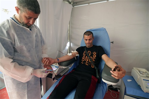 6月14日,志愿者在阿尔及利亚阿尔及尔一处献血点献血。 新华社发