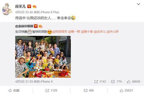 应采儿还发文调侃袁咏仪:传说中比我还凶的女人...幸会幸会哈哈哈,两个“凶女人”要切磋嘛,心疼陈小春张智霖一秒。