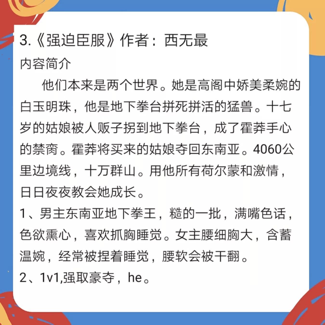 推5本金三角强取豪夺但也情有独钟的文,插翅难飞、强迫臣服等,有肉有剧情