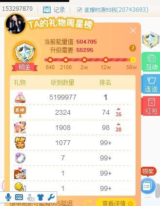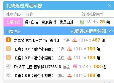看看这些连送记录,满满都是爱啊~~~大哥们很给力,水果糖暂时周星第一,YY新出的周星排名榜、周星名人榜都第一