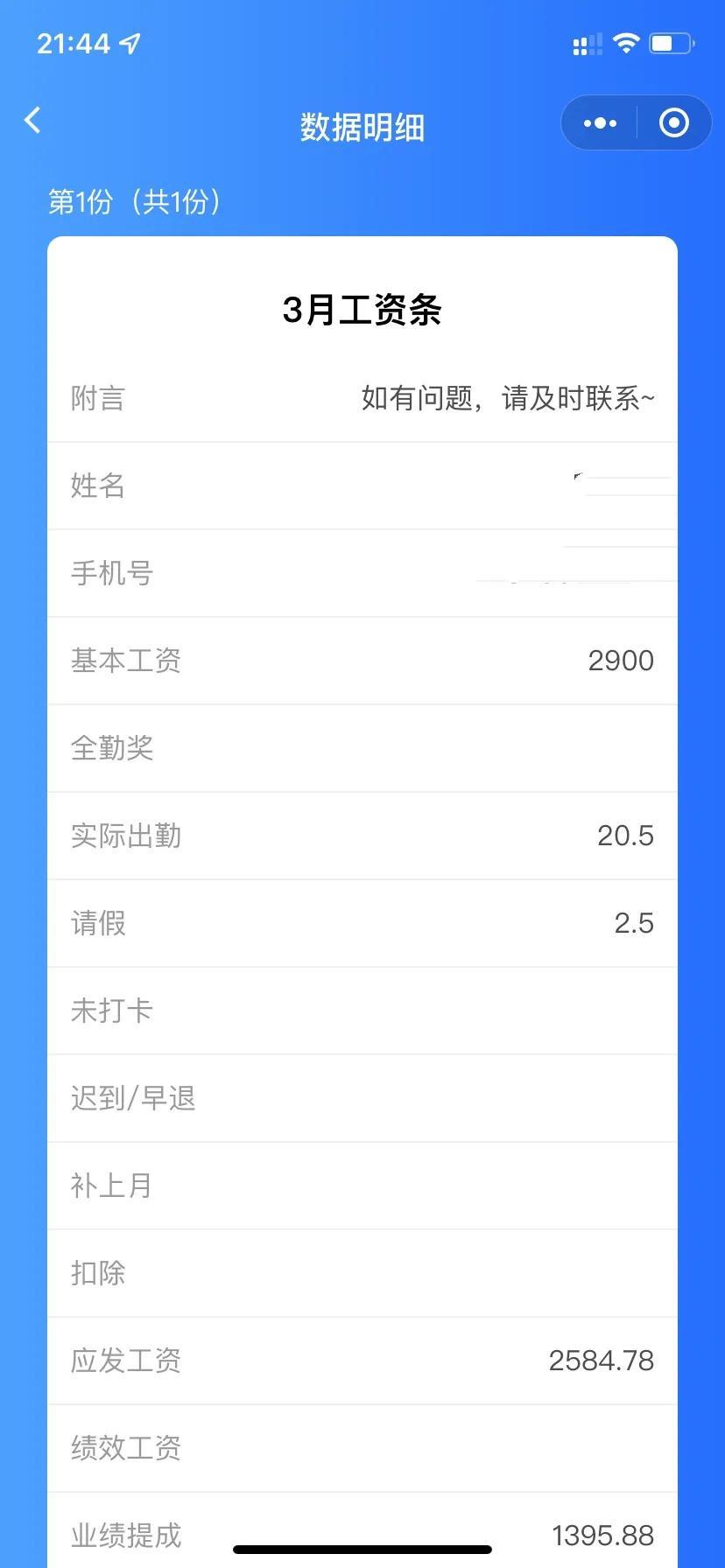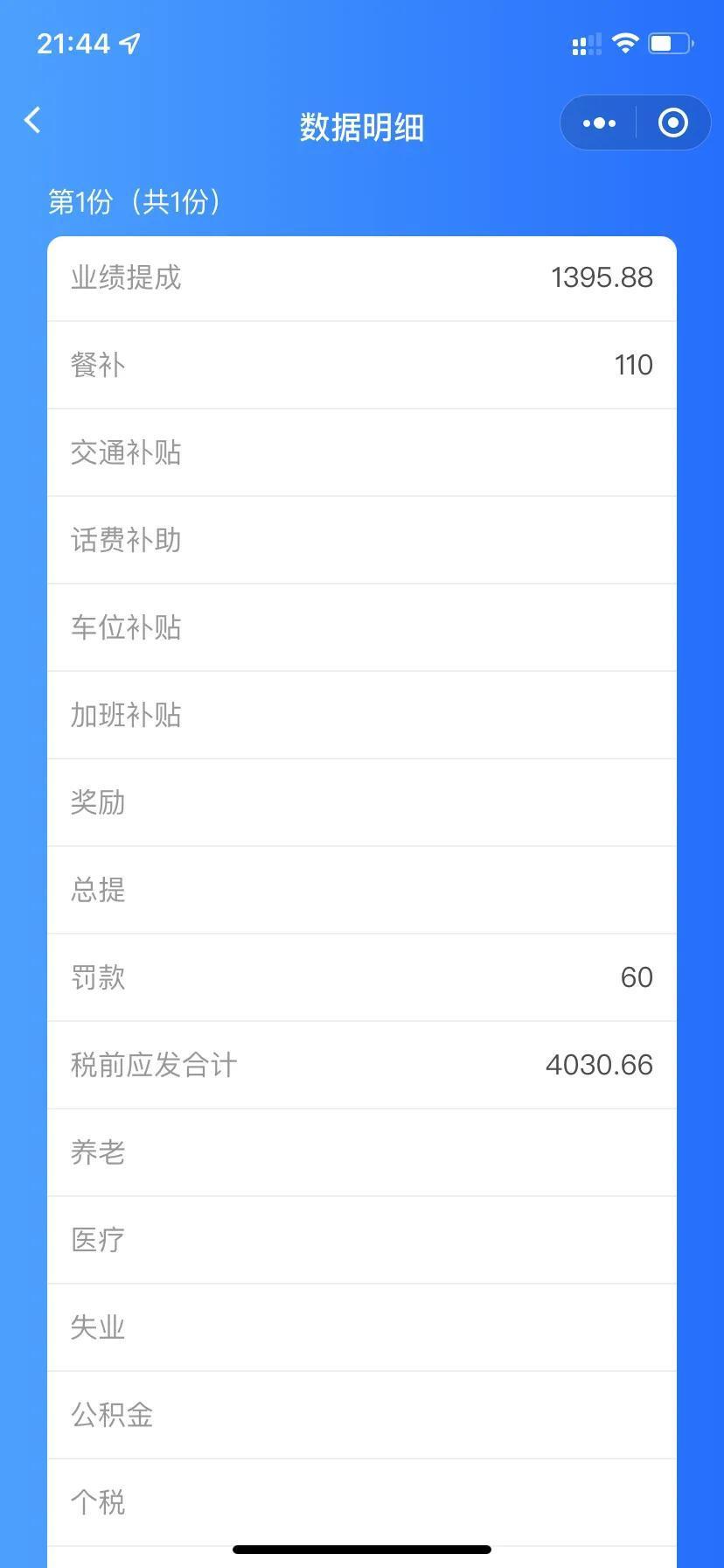 这是入职第三个月的工资。底薪2900➕全勤100,然后是业绩提成,两万以内没有提成,两万以上是五个点,四万七个点。而我一个月基本刚够提成门槛。请假两天半,全勤没有了。没有激励奖金,反正就这样吧,上班也是996,早9到晚9,一周上6天。调休1天。说实话很辛苦,工资也不是大家想象中的那么高,我这个月被罚款了60.万一再碰上投诉,虽然不罚款。领导也要说几天,你还得给客户低声下气的道歉。总之这个行业就是情绪高低起伏不定,也没有五险一金。也是挣辛苦钱。