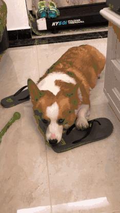 2、有些狗不仅舔主人的脚,甚至连主人的拖鞋都不放过,真是够丧心病狂的!