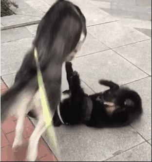 13、说来你可能不信,二哈真的每次打架,都能打出表情包!