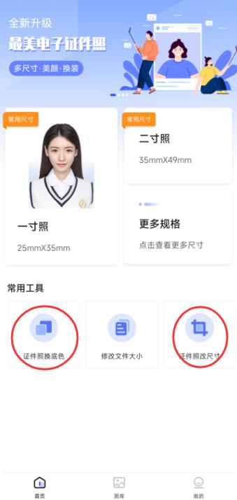 在手机上安装【最美电子证件照】app后打开app,在首页【常用工具】下你可以看到一个叫做【修改文件大小】的功能,这就是我们这次的主角了。