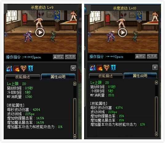 如图,9级的杀意波动和10级的杀意波动的差距在于0.5%的双暴击和1%的基本攻击力和技能攻击力。每一级杀意波动,对应增加的技能攻击力很明显只为1%。