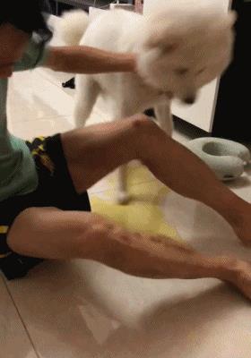 主人:看,我给你表演个魔术。汪星人;看,我也给你变了个魔术。
