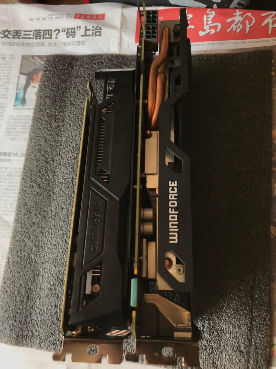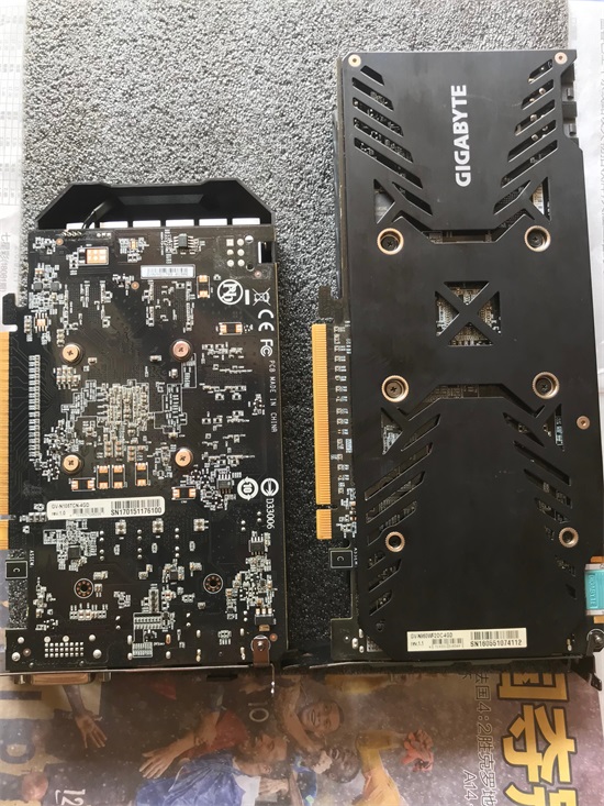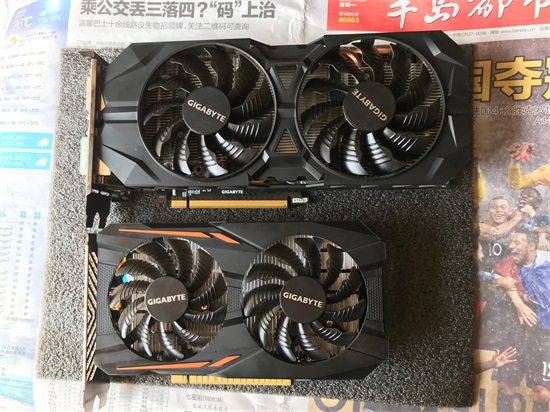 我用的是两款技嘉的,上面的是和960-4G,下面是1050Ti-4G,虽然都是双风扇,960的双pin供电加铜管散热显得更加霸气。