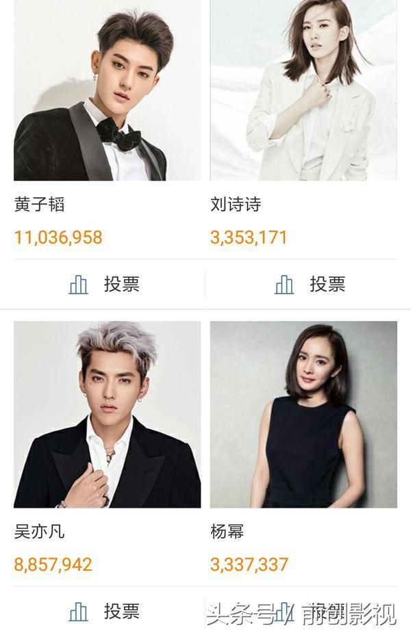 微博上无意看到明星支持者投票,根据投票人数给明星来了一个大排名,带大家一起看看。