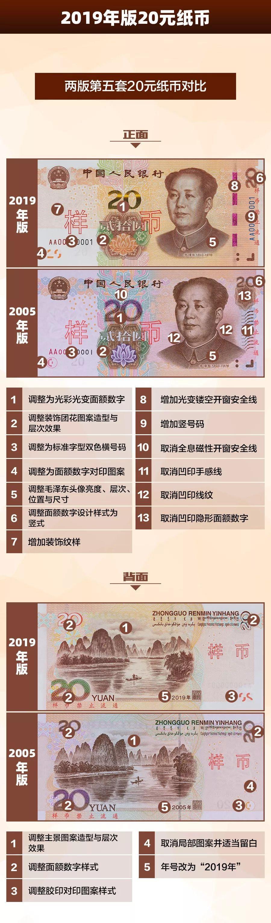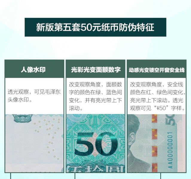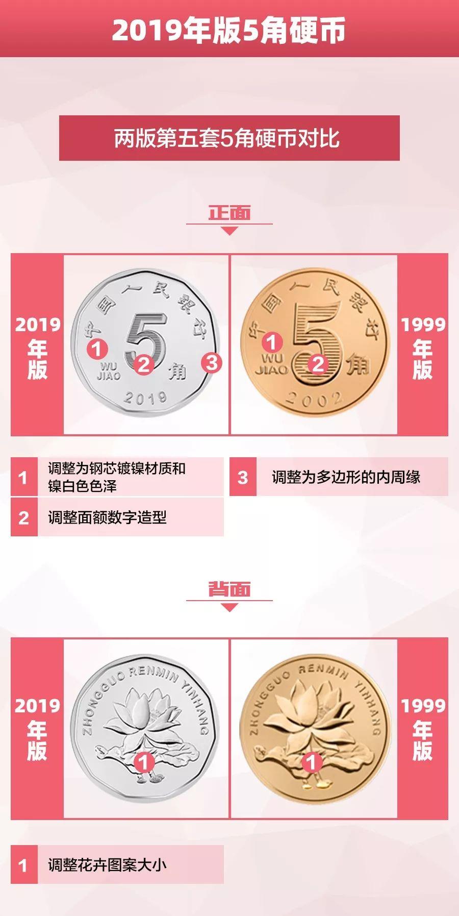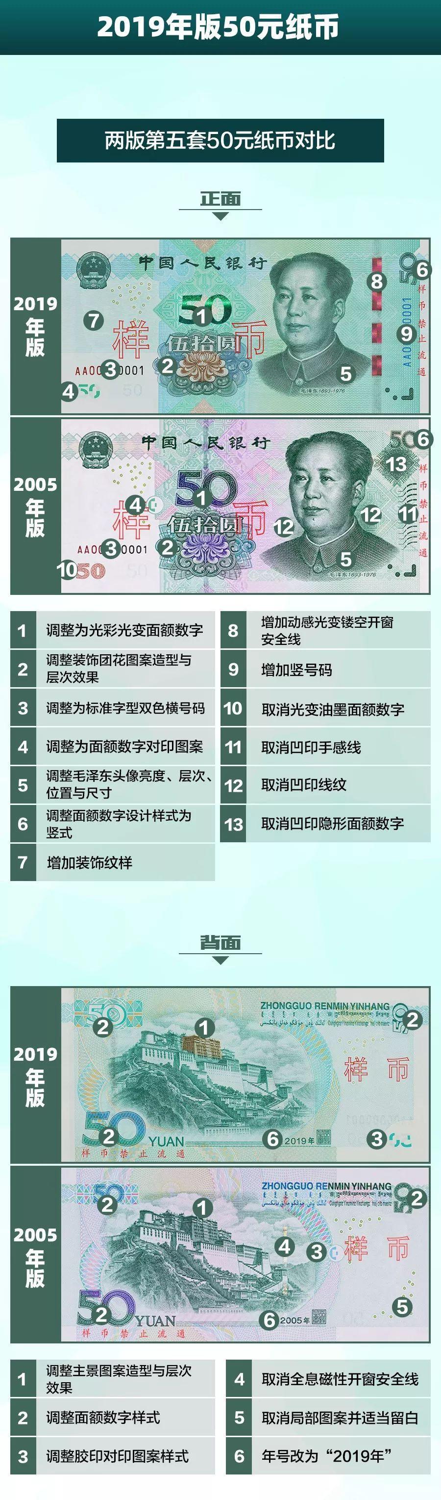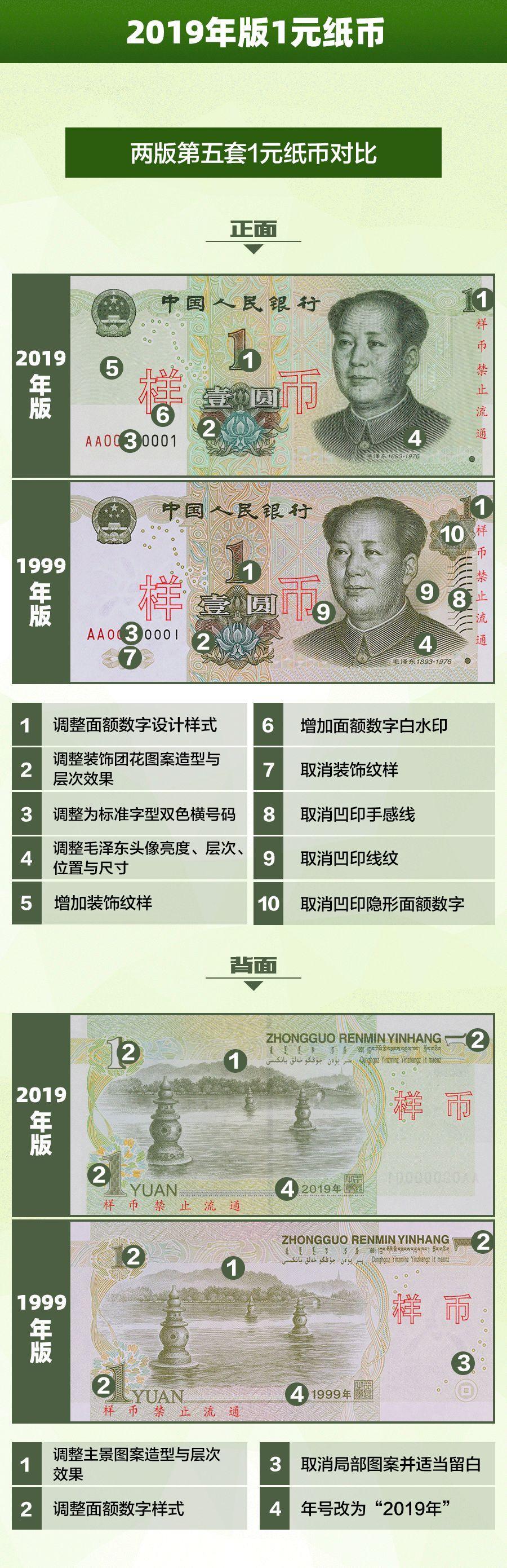 8月30日,2019年版第五套人民币正式发行,包括:50元、20元、10元、1元纸币和1元、5角、1角的硬币。
