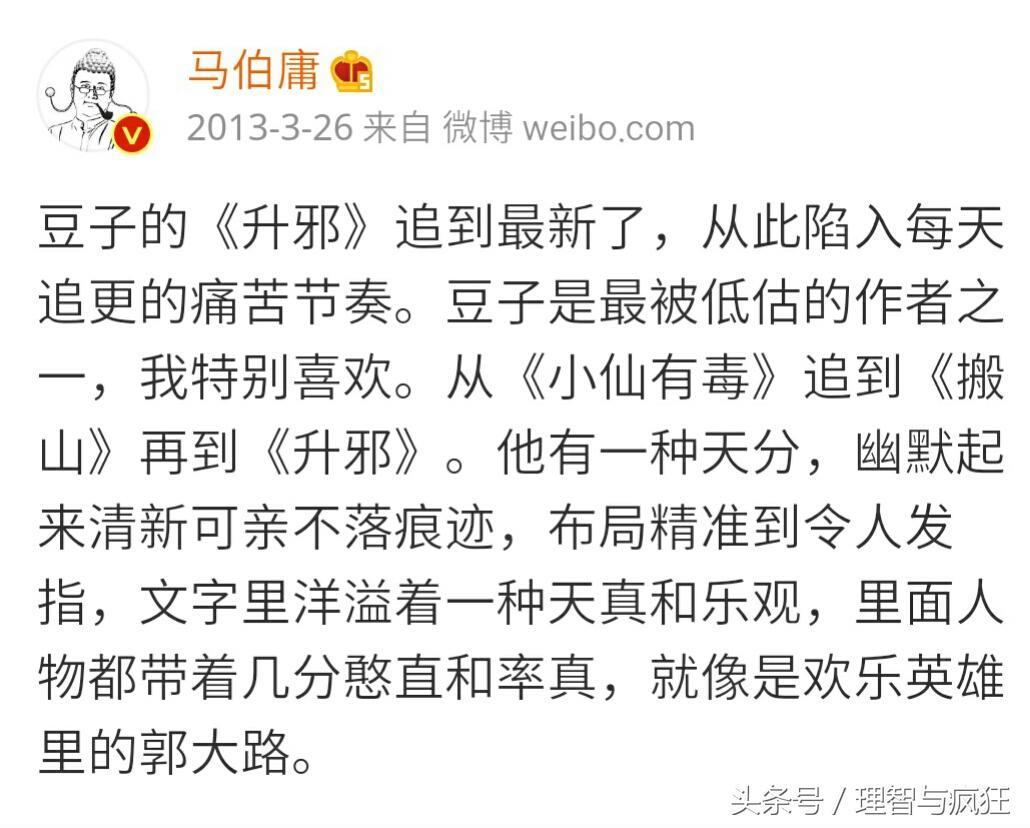 豆子是被严重低估的作者,这点是亲王马伯庸的评论: