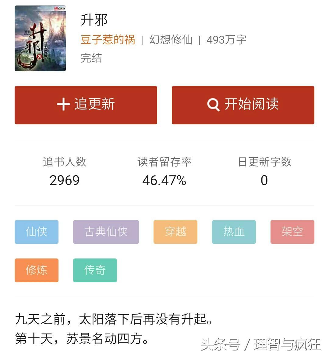 今早找书,无意中看到了《升邪》,当然是在追某神器上,也到了作者,豆子惹的祸。