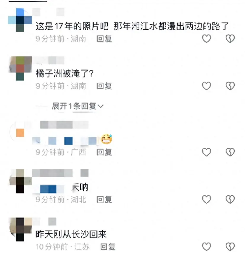 视频发布后,引发网友热议,有网友留言称,“橘子洲没有被淹”,还有网友表示,这是以前被淹的图片。