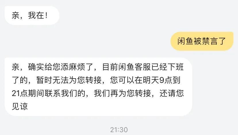用自己闲鱼号关联的淘宝号去联系淘宝客服,这样会更快捷的联系到客服,他们的工作时间为9:00–21:00,所以我们要在这个期间联系他们。直接向他们反映我们的问题,他们就会热心的帮忙处理了!